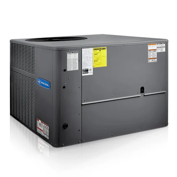 Introducing the MRCOOL 3 Ton 36K BTU 14 SEER R-410A Multi-Position Packaged Heat Pump, a sophisticated solution that seamlessly integrates high-performance cooling and robust heating into a single, easy-to-install system. This competitively priced unit operates at an impressive 14 SEER efficiency, making it an ideal choice for addressing complex air comfort challenges in a variety of settings, including suburban homes, commercial office spaces, condominiums, and seaside villas.