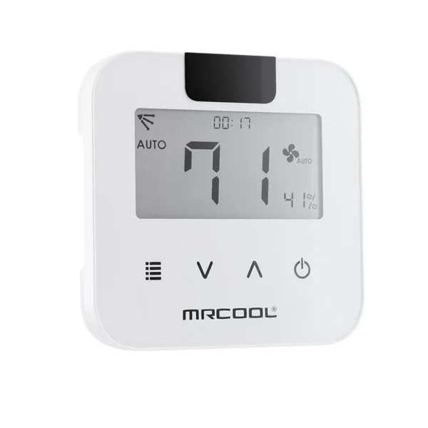 - Effortlessly manage your comfort with the MRCOOL Mini Stat Bluetooth Thermostat and the SmartHVAC app, enabling control from anywhere within your home.