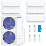Experience ultimate comfort and convenience with the 4th Generation MRCOOL Mini Split, featuring a DIY 48,000 BTU Multi-Zone Condenser, five 9,000 BTU Wall Mounted Air Handlers, and five Remotes—all installable by you! Here’s what’s included: