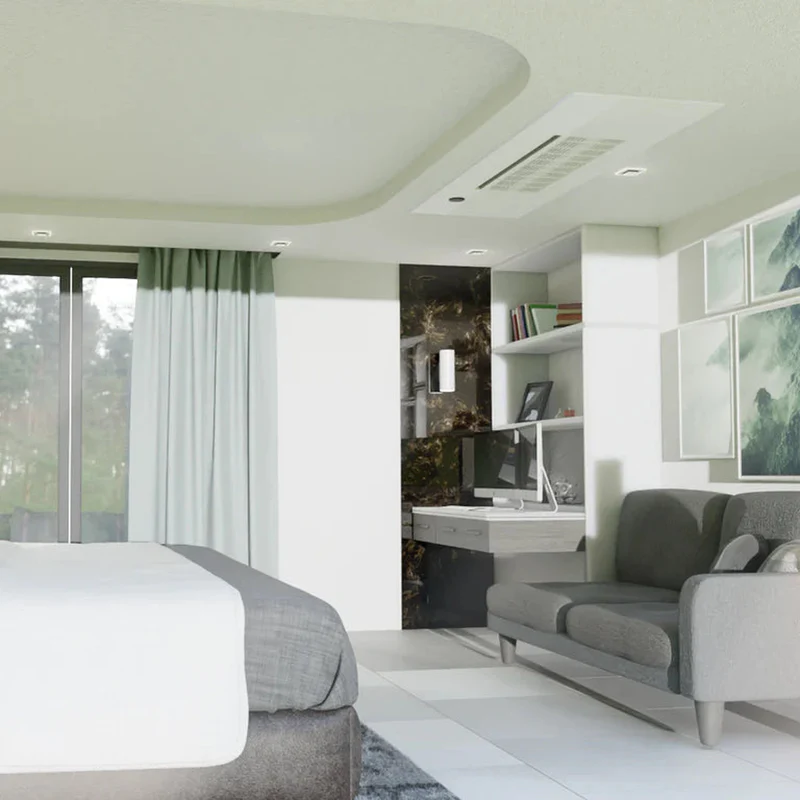 - Includes an easy-access elevating filter panel, which can lower up to 4.9 feet from the cassette for simple maintenance.