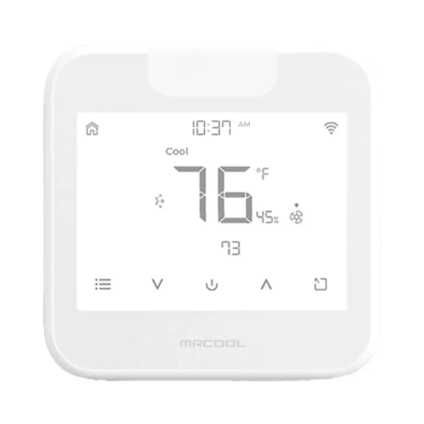 Gain precise control over your home’s comfort with the MRCOOL Smart Wi-Fi Mini-Stat (MST05). Engineered for maximum convenience and energy efficiency, this sleek thermostat brings your HVAC system into the digital era. Whether you’re at home or on the go, the MRCOOL SmartHVAC app allows seamless management of your heating and cooling system. With its straightforward DIY installation, advanced energy-saving capabilities, and intelligent scheduling options, the MRCOOL Smart Wi-Fi Mini-Stat is a smart upgrade for any modern, energy-conscious household. Optimize your comfort, reduce energy consumption, and stay in control with MRCOOL.